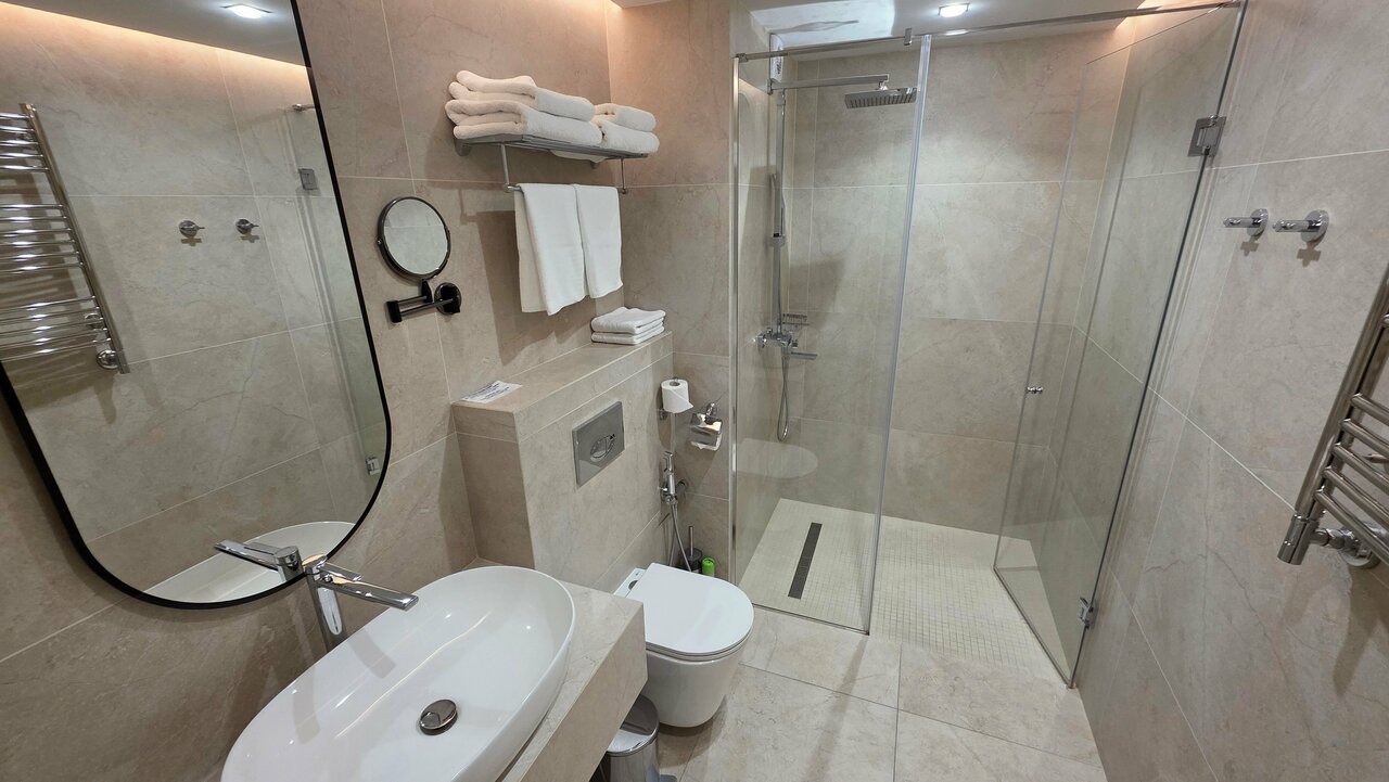 Отличный отель. Сервис на высшем уровне. Номера отличные, чисто, аккуратно. Большие номера. Отель на ограниченное количество отдыхающих. Два раза были в бассейне (морская вода) и два раза только мы одни с женой. Хамам отличный, только по-моему надо температуру чуть снизить, очень жарко (по сравнению с турецкими хамамами). Есть своя охраняемая парковка. Персонал очень приветливый и внимательный. Завтраки супер.