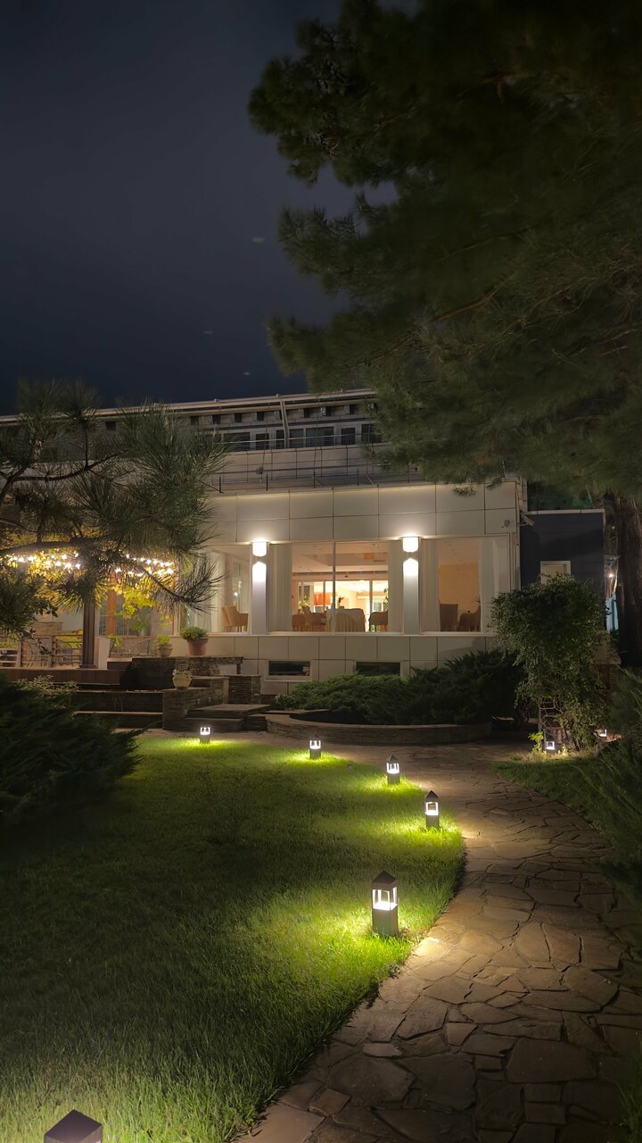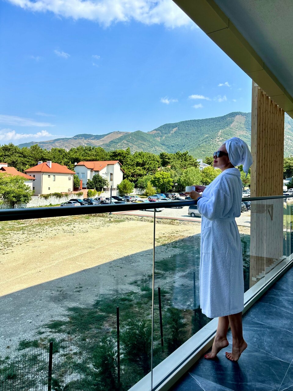 Отдыхали пару дней в октябре, не очень повезло с погодой, но удалось расслабиться и перезагрузиться. Комфортные номера в коттеджах, отличный подогреваемый инфинити бассейн, вкусное, достойное питание. Медицинский центр предоставляет множество услуг, мы оценили спа-ванну и тайский массаж. Территория ухоженная, зеленая, множество растений, гранат, мандарины, фейхоа. Есть детская площадка на улице и детская игровая комната в главном корпусе (но оставить ребенка одного нельзя, не было сотрудника). В каждом номере огромный балкон, с которого открывается восхитительный вид!!!